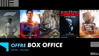 CANAL+ BRAND SOLUTIONS vous propose l'offre BOX OFFICE : un pack TV clé en main qui vous garantit une présence en contexte cinéma en prime sur CANAL+, juste avant la diffusion des 5 films les + attendus sur janvier-mai 2026 : FORMULE 1 LE FILM, SUPERMAN, JURASSIC WORLD, CHIEN 51 et UNE BATAILLE APRES L'AUTRE.